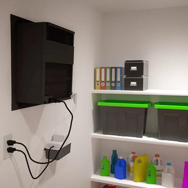 This "through-the-wall" wine cellar cooling unit is designed to fit between standard wall studs with minimum modifications necessary during the installation process.